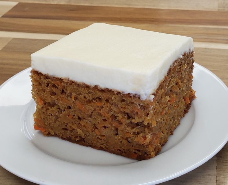 Made with organic carrots, this super moist cake is topped with cream cheese frosting